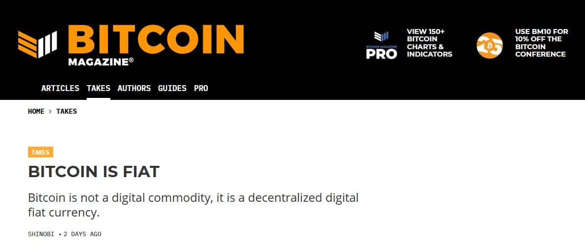 Long-time Bitcoiner Shinobi recently claimed in a brief Bitcoin Magazine article that "bitcoin is fiat." While this assertion is provocative, it reflects a misunderstandings about both fiat and Bitcoin, and provides a great opportunity to dispel some dangerous assumptions.