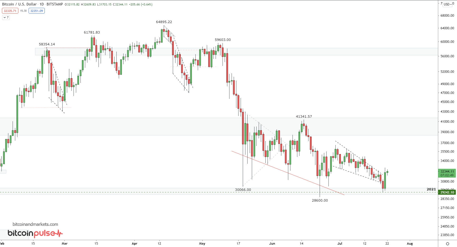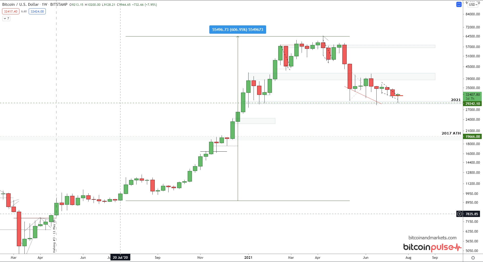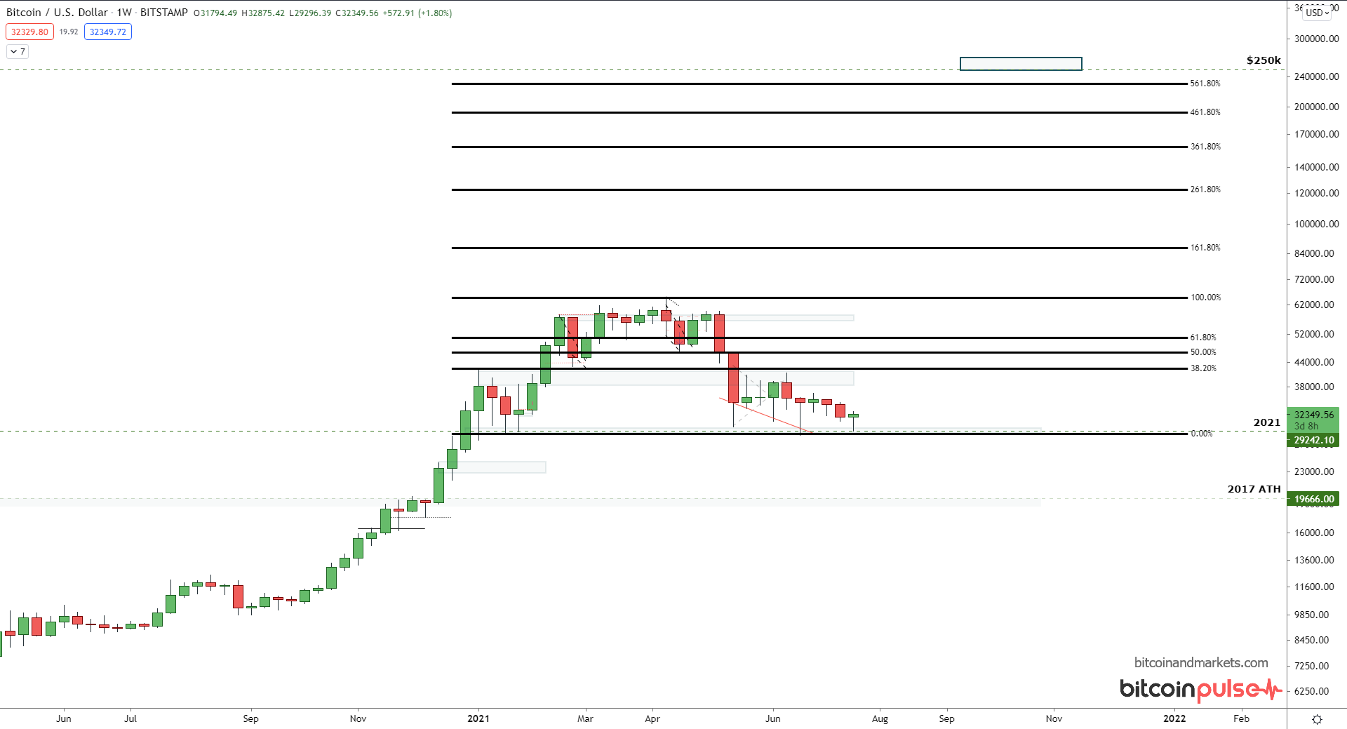 Last year this week, price was $9,200 and was when price really started to take off. It rallied 600% all the way to $64k. If the 3rd week of July this year is anything like last, we could be just starting the next move.