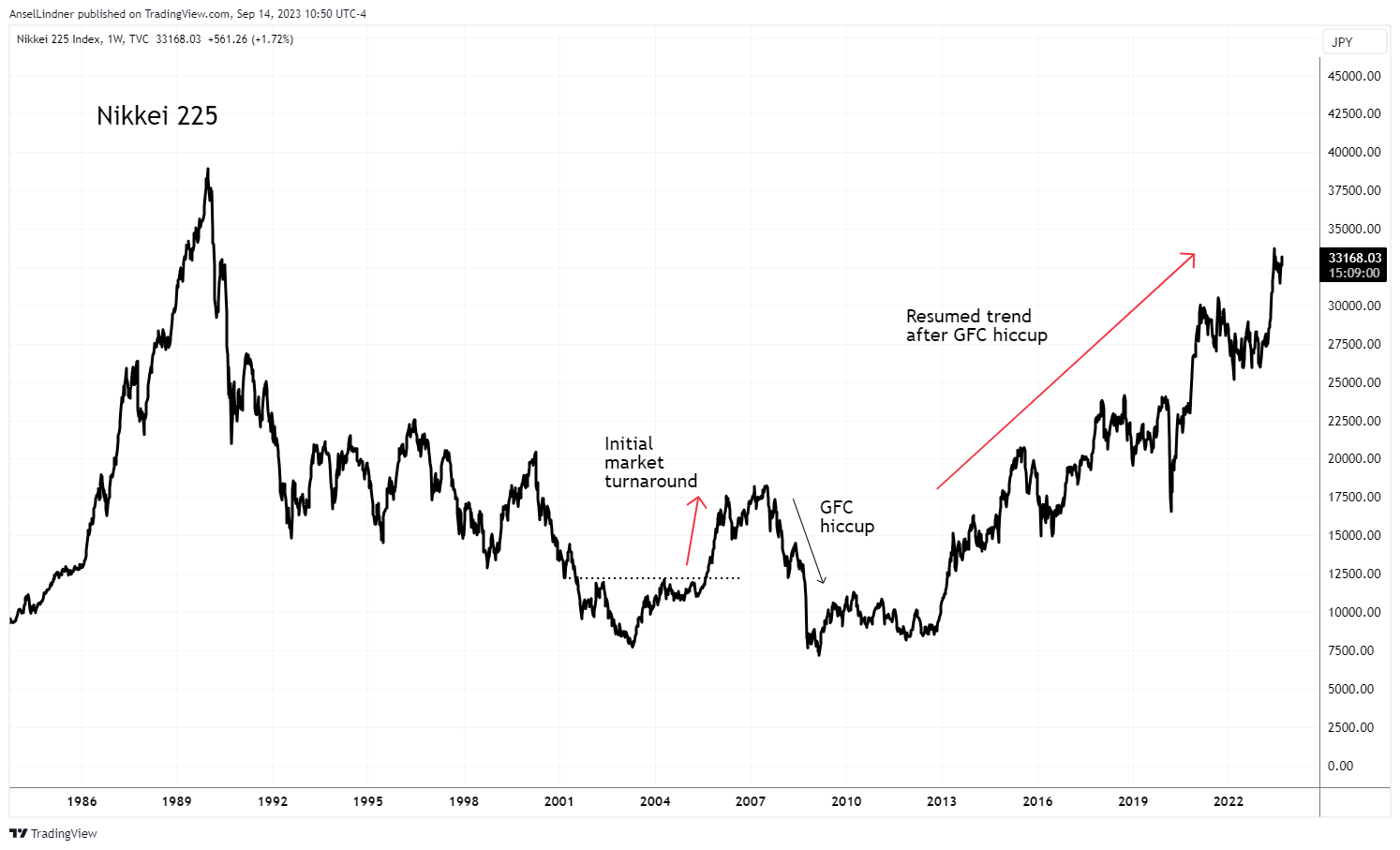 The rally in the Nikkei over the last several years, has not coincided with a continued rise in the fertility rate, which peaked in 2015 and has resumed its decline.