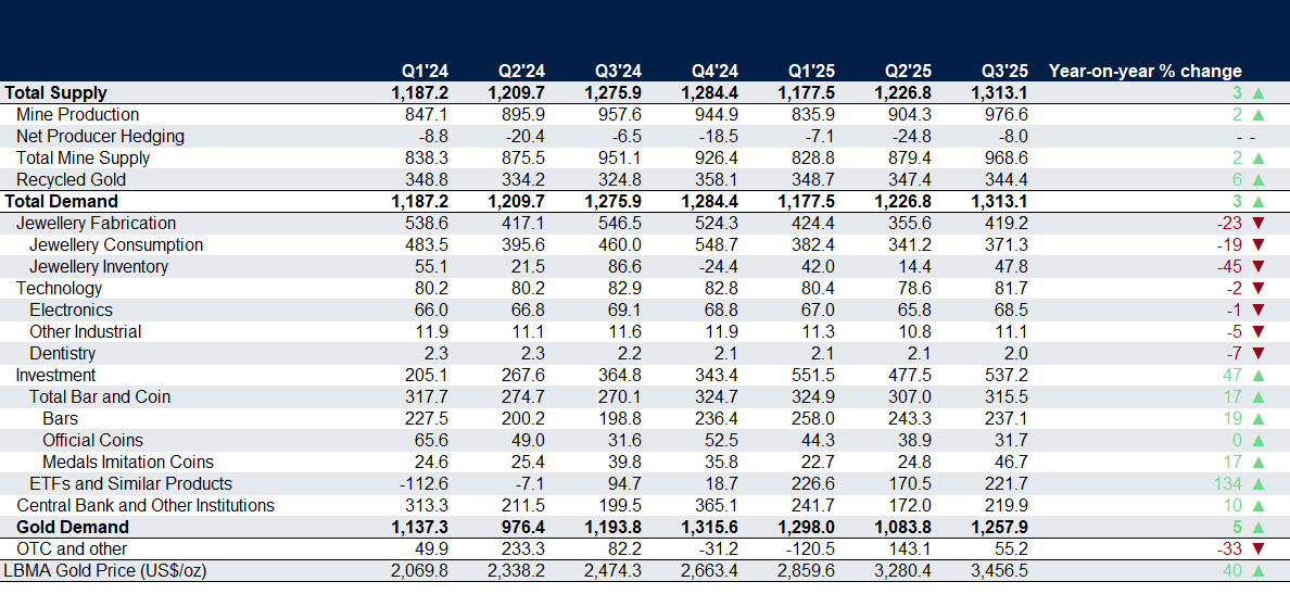 Central bank buying is in a downtrend, while FOMO is gripping investment buyers. And again, ETF demand surpassed central banks outright in Q3.
