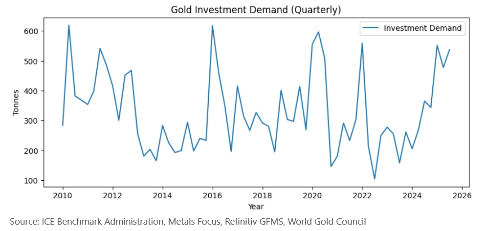 What has accelerated is investment demand, particularly through financial channels. ETFs and investment flows are doing the marginal price setting. That distinction matters, because it changes what kind of rally this is.