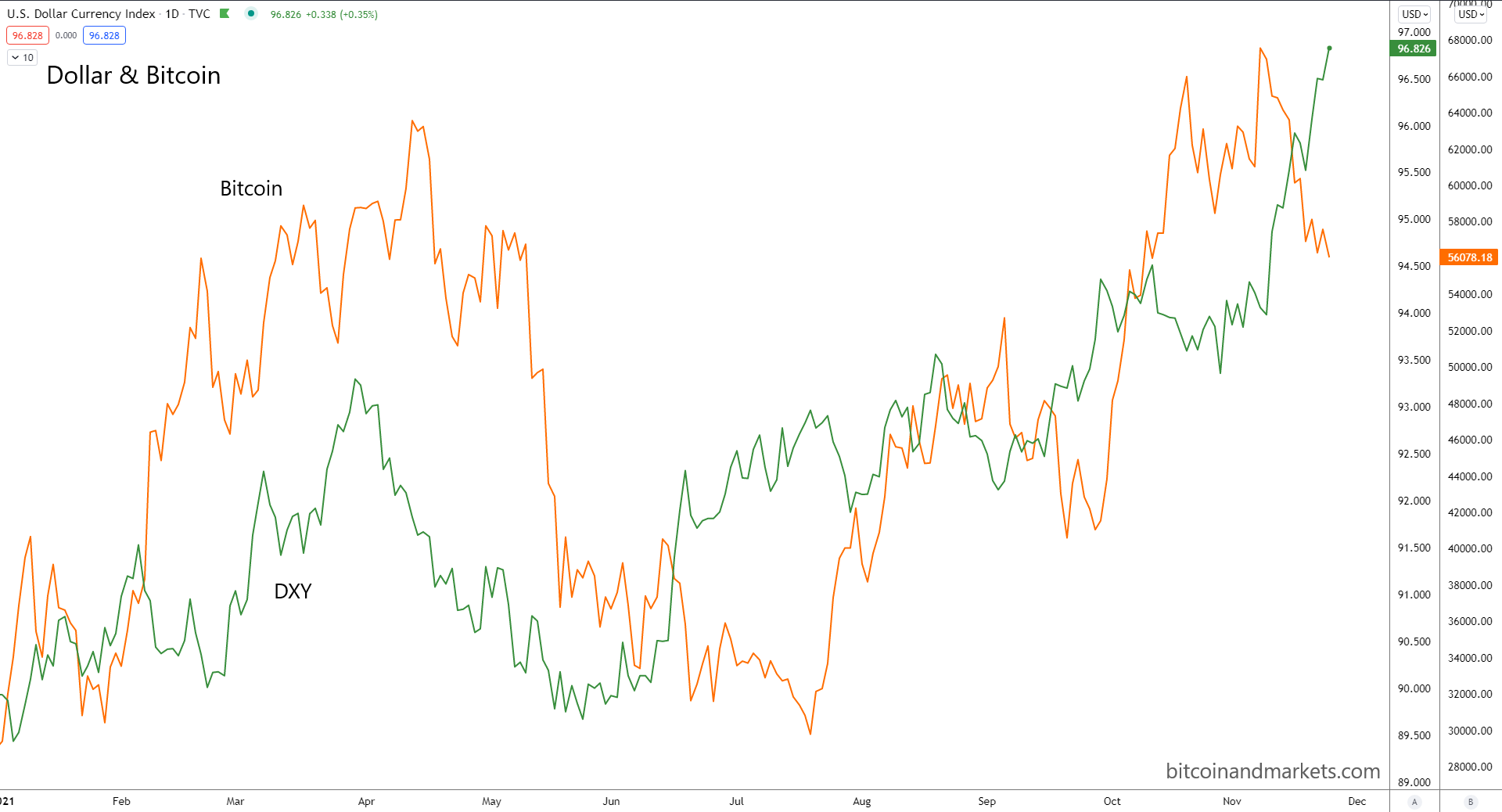 I used the below chart in the show notes for Fed Watch, showing that the dollar and bitcoin have been very correlated this year. My reasoning is that they are both safe havens. The dollar feels the impulse first, followed about a month later by bitcoin. Price action in bitcoin over the last few days (sorry didn't have time to update the chart), might have changed this picture quite a bit, but the trend is still generally intact.