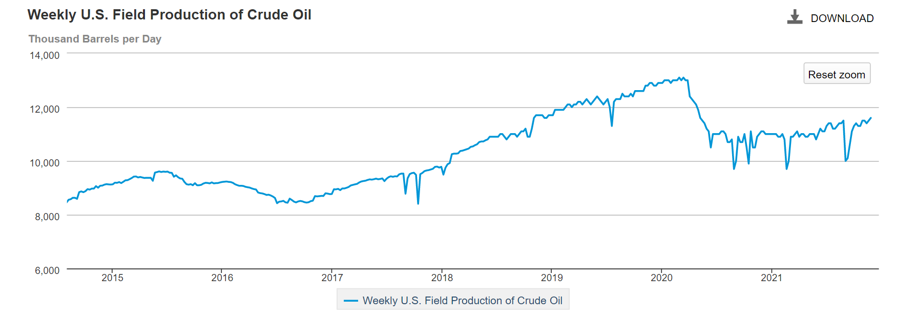 More production is trickling online in the US. The current week's data shows the highest output yet since the corona crash at 11.6 million bbl/day. I expect this number to slowly climb over the next year. Maybe by Dec 2022, production will be nearing the 13 mbd mark again.