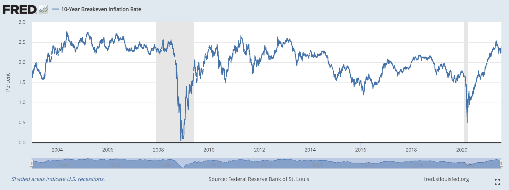 And the 10Y Breakeven tells a similar story, a peak of 2.52%.