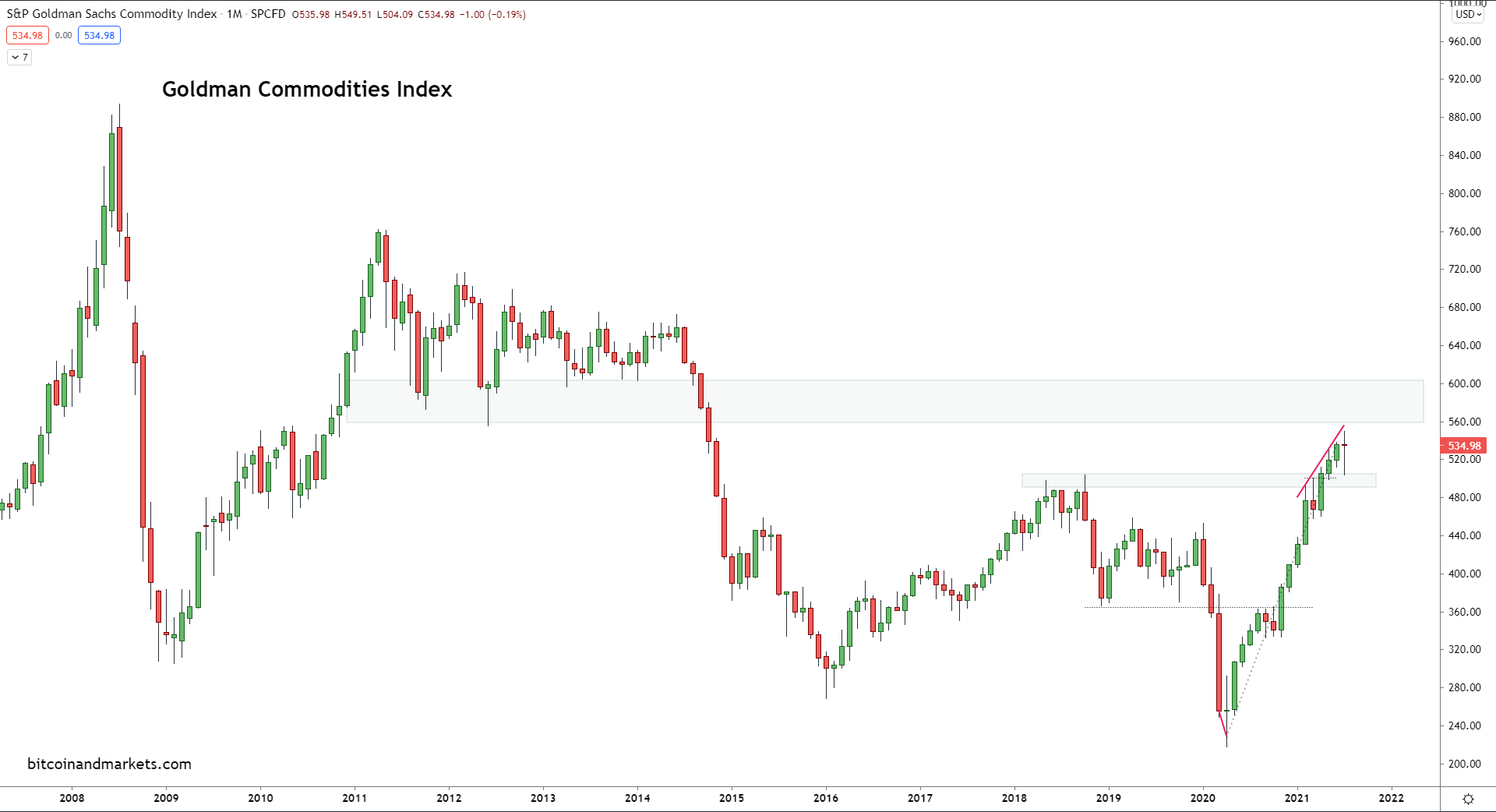Next, on this Macro Chart Rundown, let’s take a look at the commodities index. If we are entering a secular bull market in commodities due to inflation, we would expect these indices to be breaking important levels. Why is the bear trend still intact?