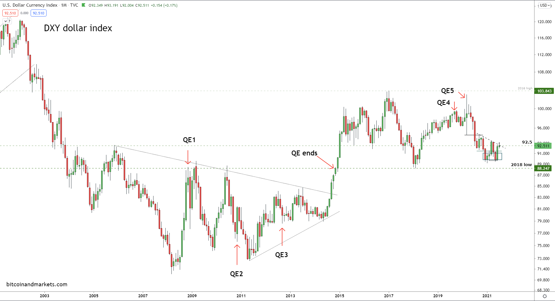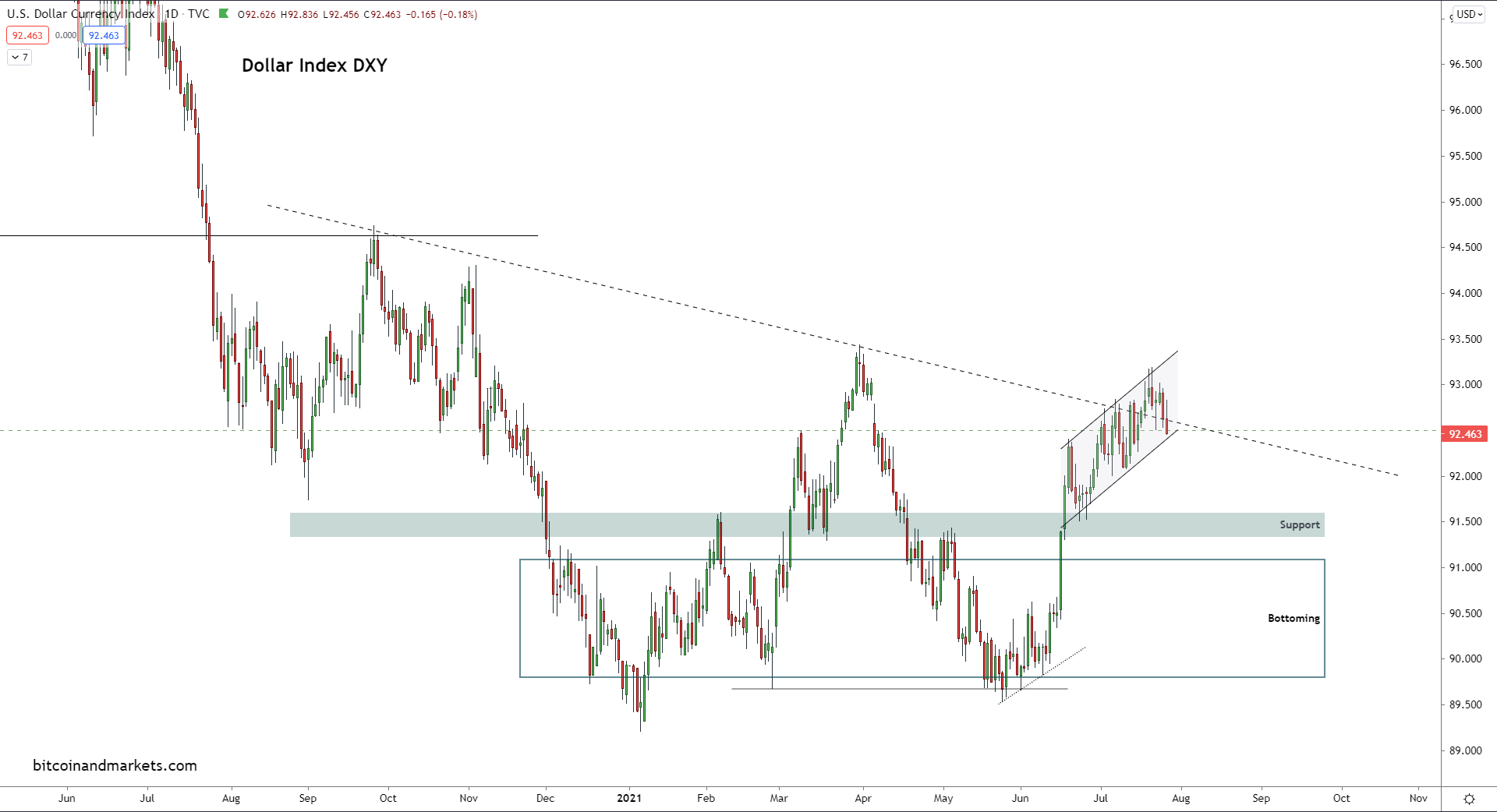 Most recently, the dollar held the 2018 low and is starting to rally; Bitcoin also hit a recent bottom of $28,000 which is much higher than its lows in 2018 and 2020.