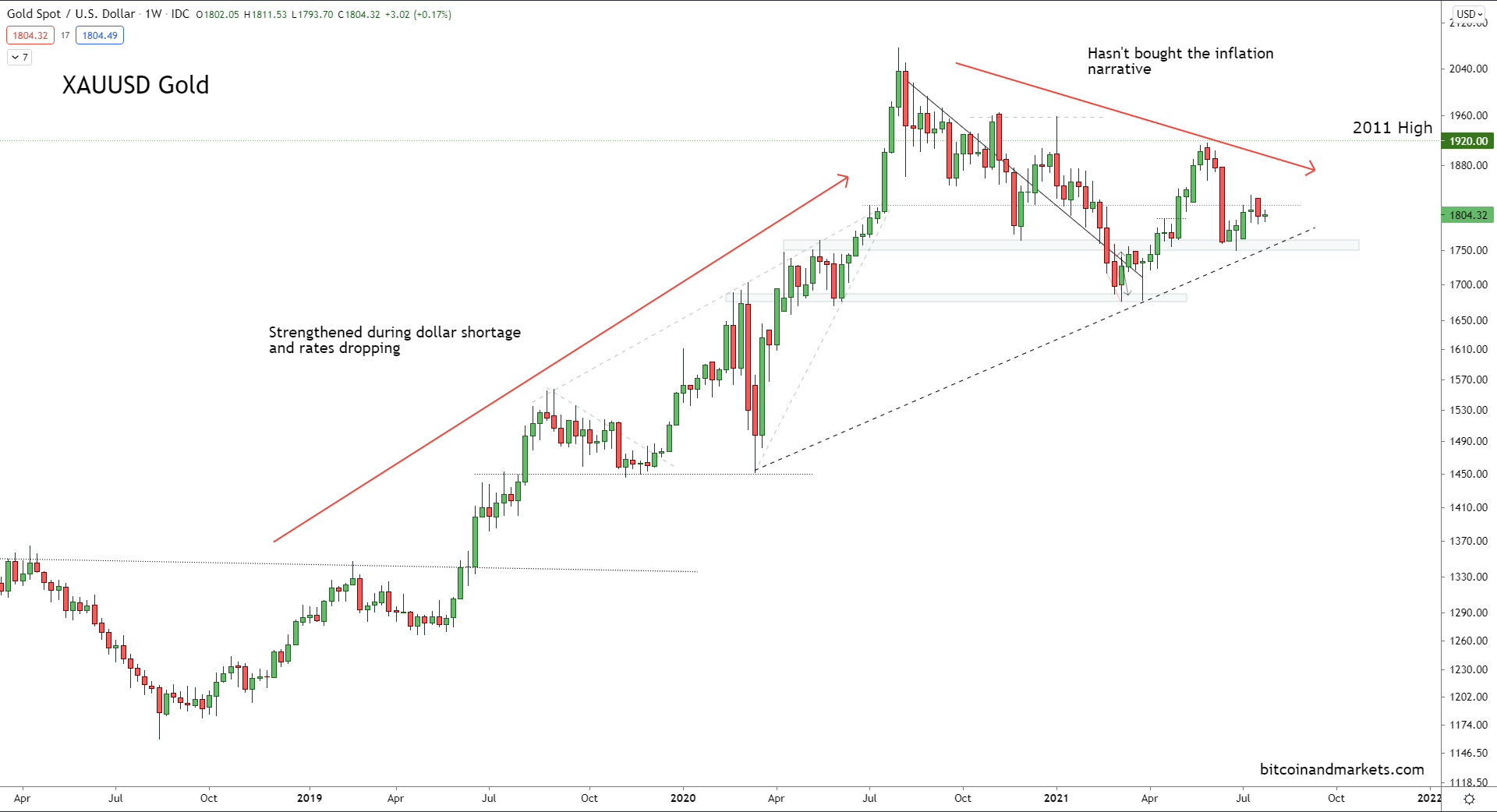 My 2021 forecast for gold was a bearish H1, followed by a strong H2. I maintain this call. When I say strong though, I don’t mean strength like bitcoin. Perhaps gold can gain 10-20%, putting in a new ATH.