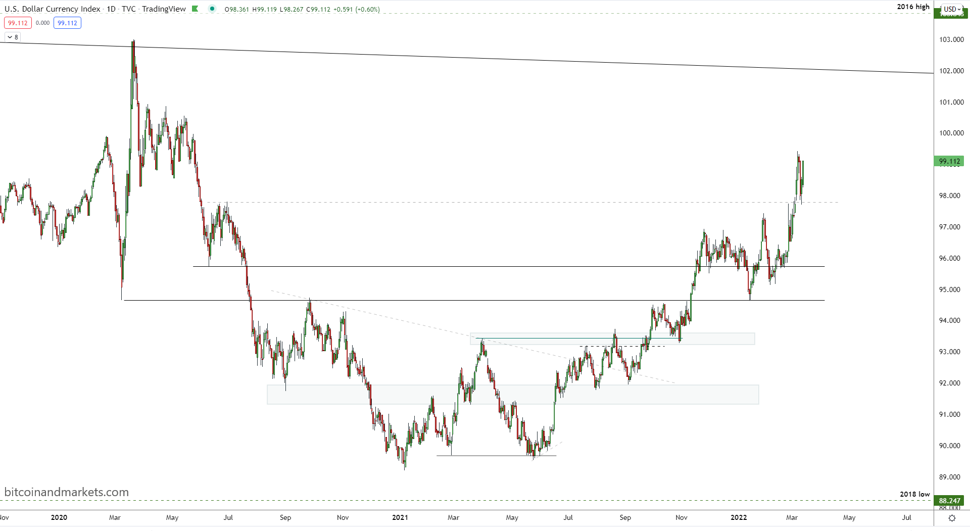 Despite all the inflationist hype around the death of the dollar, inflation at 40-year highs (FYI it is CPI "consumer price index" that is at 40-year highs, not "inflation"), all the calls for a multi-polar currency world, the dollar is rising during the Ukraine conflict. This means the dollar is consolidating its control.