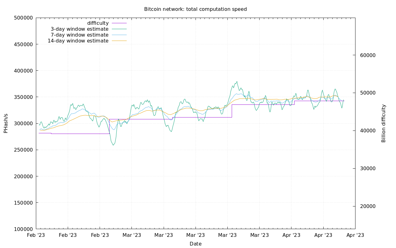 The computational speed of the network has been flat this week. Difficulty is estimated to increase by 0.8% in 2 days. Overall, a pretty steady healthy period, waiting for what's next.