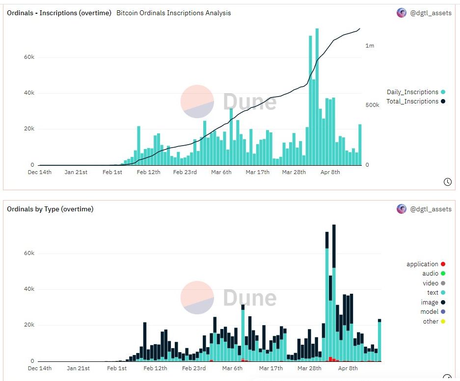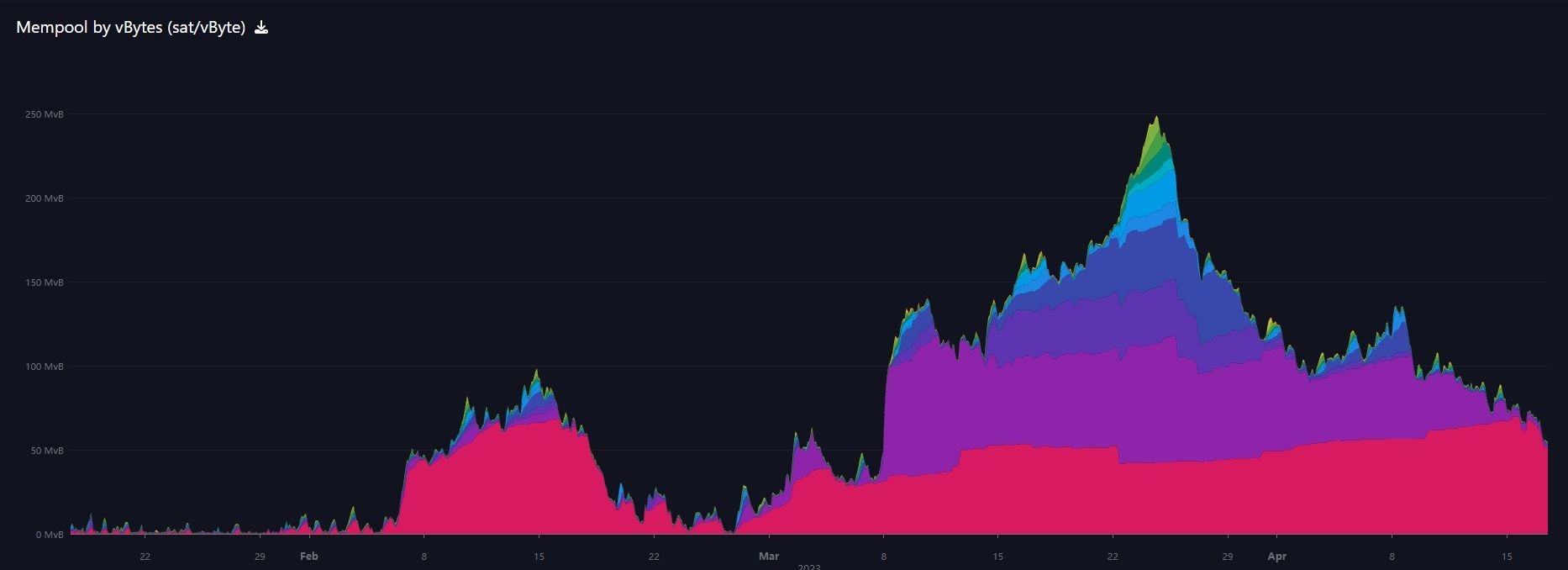 This is despite a spike of ordinal inscriptions in April. What this means to me is the bitcoin network is handling the controversial use transaction types and anything the government attackers are throwing at it. There is apparently little connection between ordinals/inscriptions and the mempool.