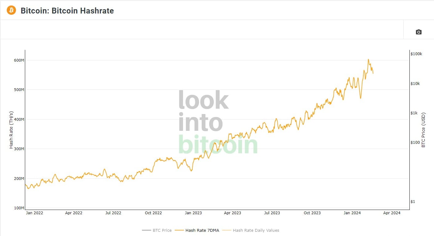 The hash rate chart just looks like business as usual. We are now between the coldest part of winter and hottest part of summer, so miners will likely not have to turn off due to curtailment for the grid for another 4 or so months. A lot of their attention is now on the halving. Only 57 days away.