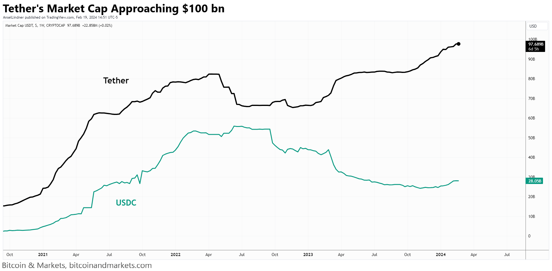 Despite this development, Tether's supply continues to rise undaunted. Tether also holds bitcoin to back their tokens, which could act as a powerful example for how bitcoin can be used going forward to back dollars specifically.