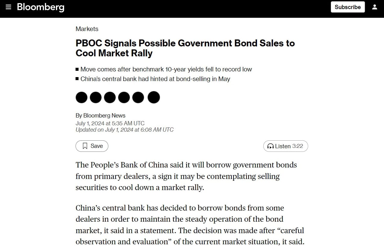 Also, notice in the article, the PBOC has to borrow bonds to sell them which does not match other central bank playbooks. Why does the CCP not institute massive deficit spending to increase the supply of government bonds like the US? Because the yuan is already under massive forex pressure.