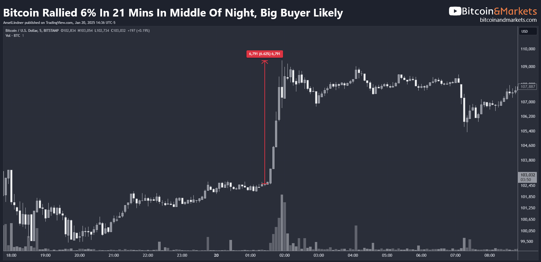 One of the most surprising developments over the last 24 hours was the 6% rally in just 21 minutes at 1:30 AM ET last night on impressive volume. This type of move implies a significant buy from where. Whale are staking positions.