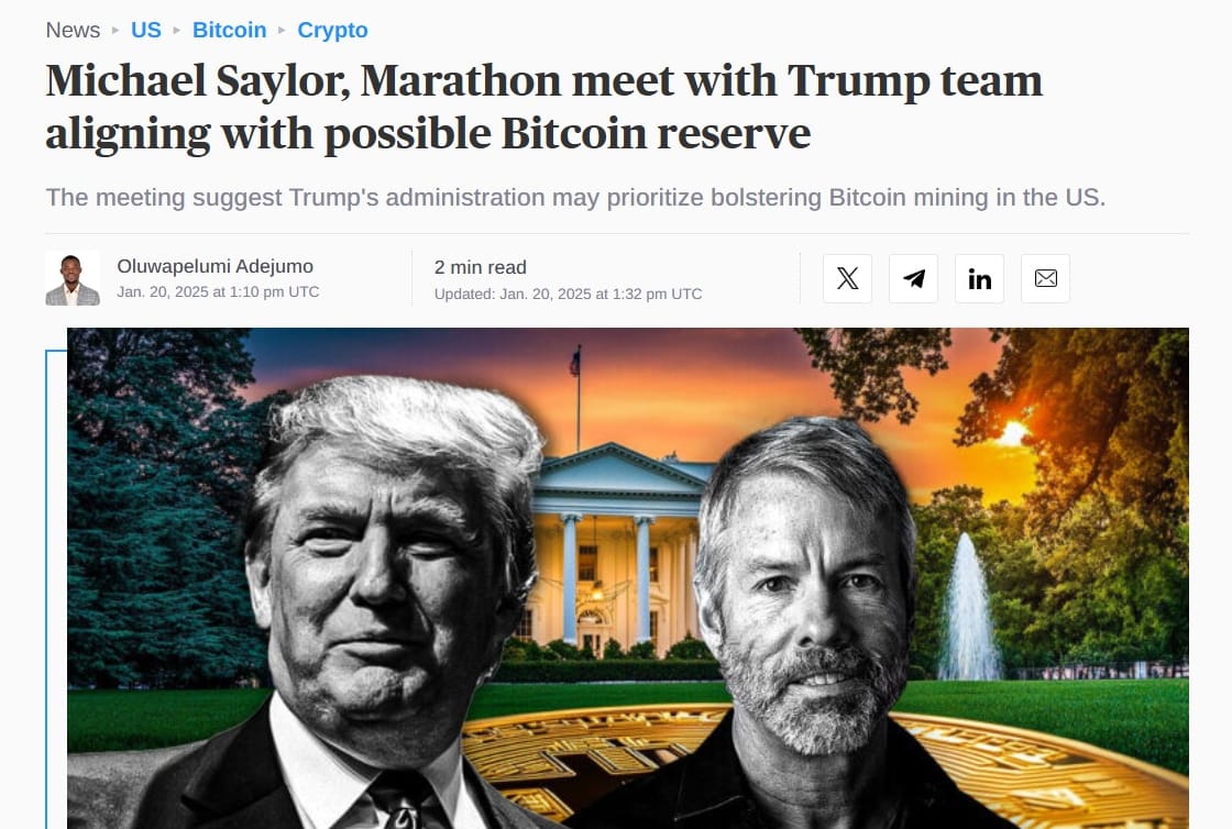 This week, large US public bitcoin miner Marathon had a meeting with Trump and Michael Saylor.