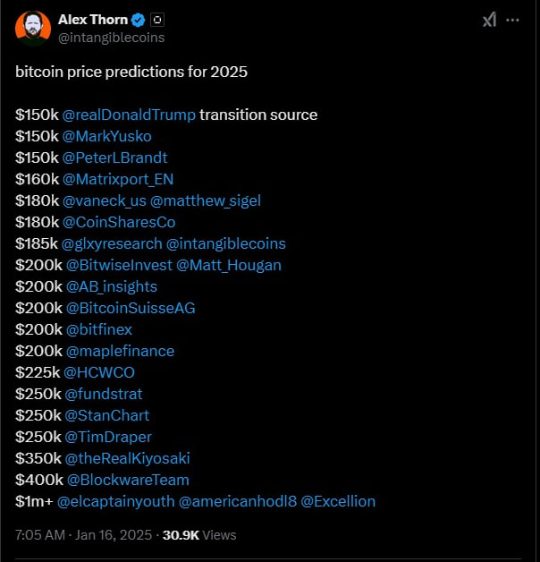 I wanted to throw these price predictions in here for the end of 2025. Most center around $200k.